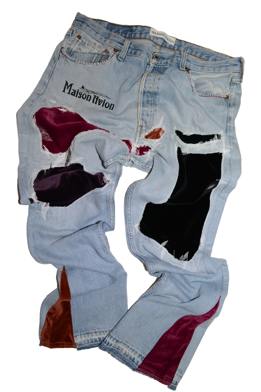 MULTICOLOR PATCHWORK HANDCRAFTED DENIM PANT W33L32